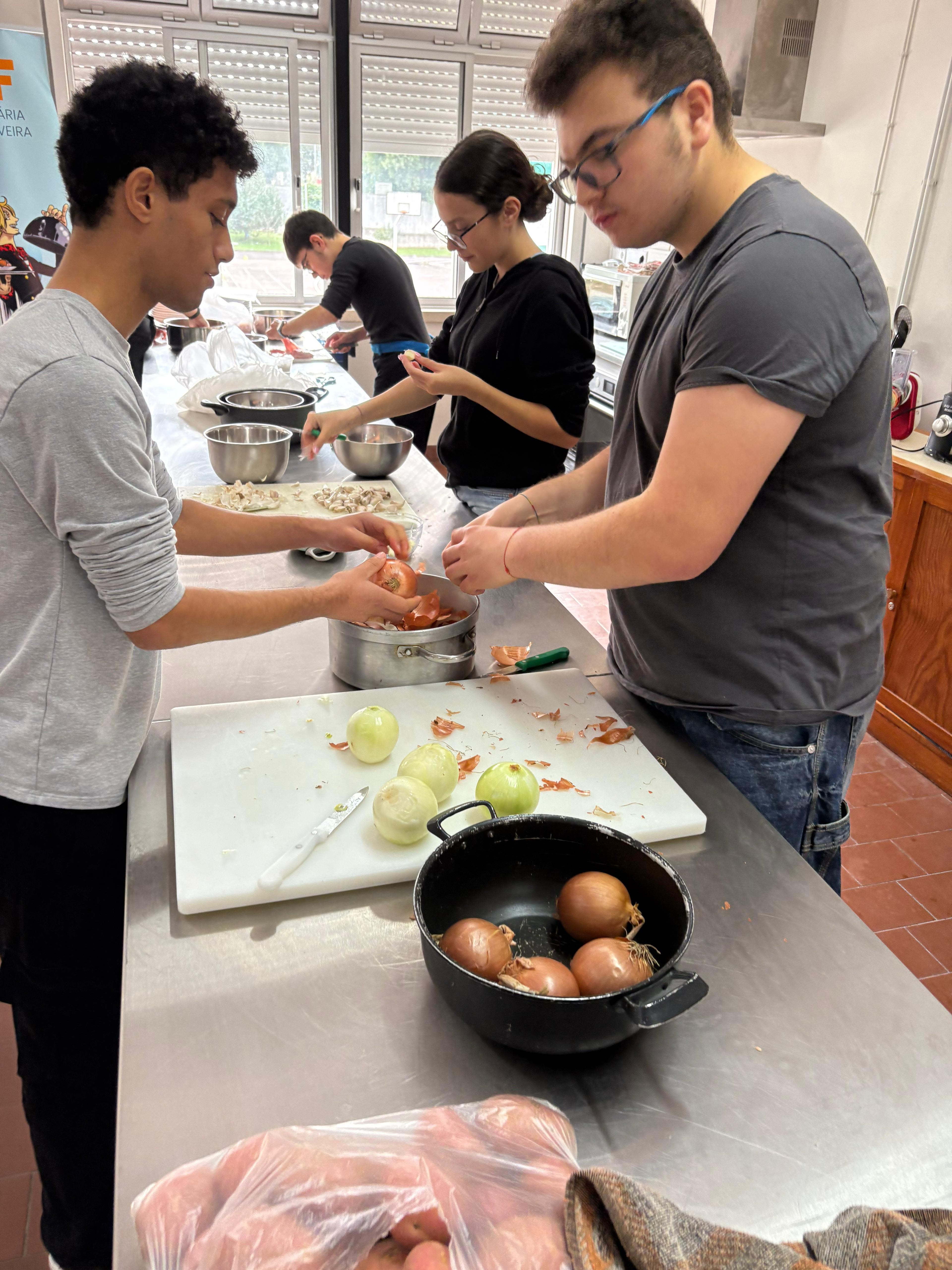 Ainda na saga dos almoços pedagógicos, a turma 10E do curso profissional de Restaurante e Bar tem assegurado grande parte de toda a mise en place do serviço — seja de restaurante, cozinha ou mesmo serviço de cafetaria.